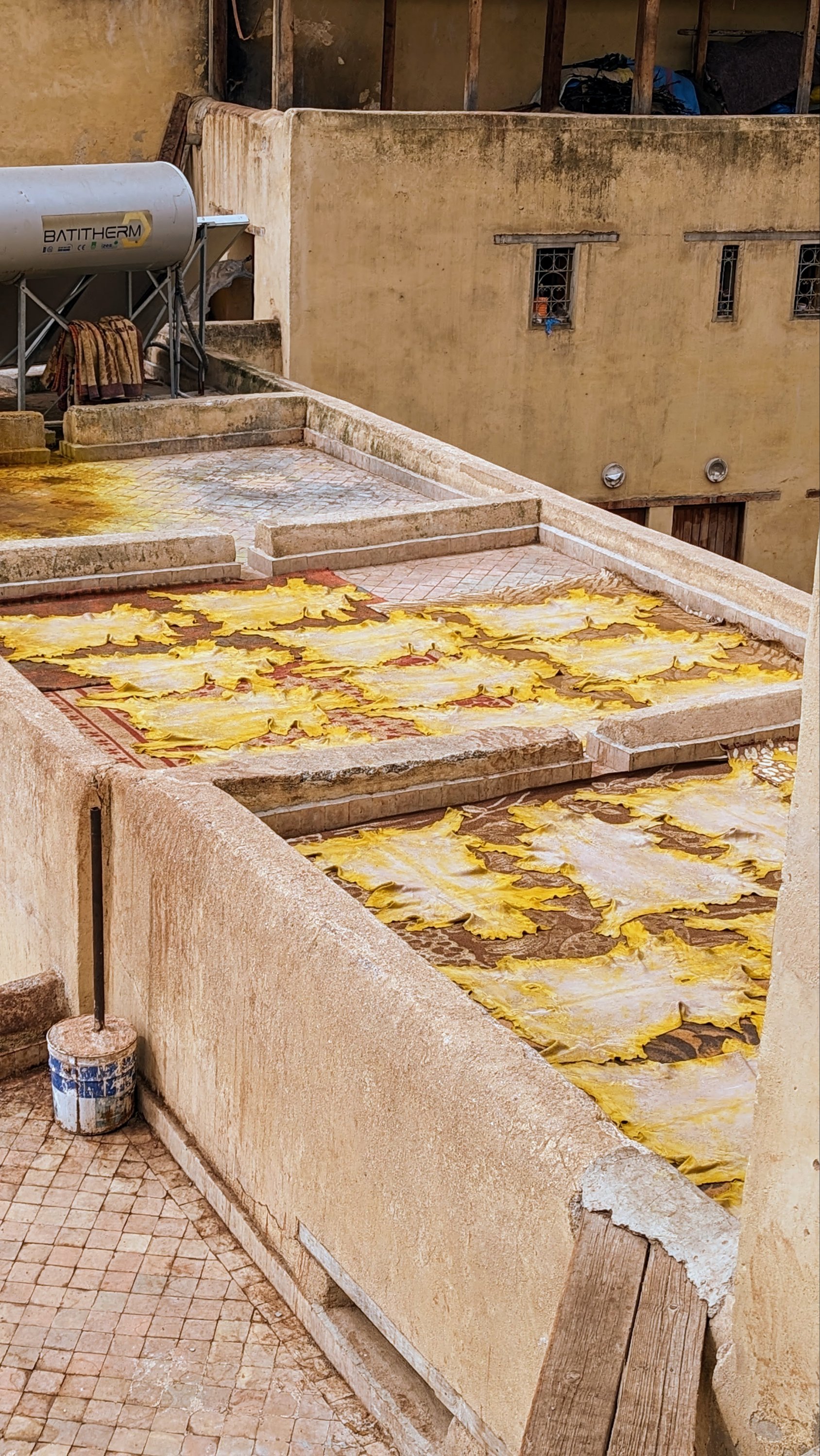 Las curtidurías es un submundo dentro de este mundo… No se pierdan ir a alguna de ellas, yo recomendaría la de Chouwara. Conforme llegan, un trabajador de la tienda de al lado saldrá a su encuentro para ofrecerles una explicación sobre el negocio de las pieles desde la terraza de su tienda, y les ofrecerá un ramillete de hierbabuena para que respiren a través de él y aguantar así el olor del sitio. Háganle caso, sabe de lo que habla, y por un euro les va a contar cosas muy muy interesantes y les va a facilitar el rato con la hierbabuena. Sin ella el espectáculo es mucho menos llevadero…