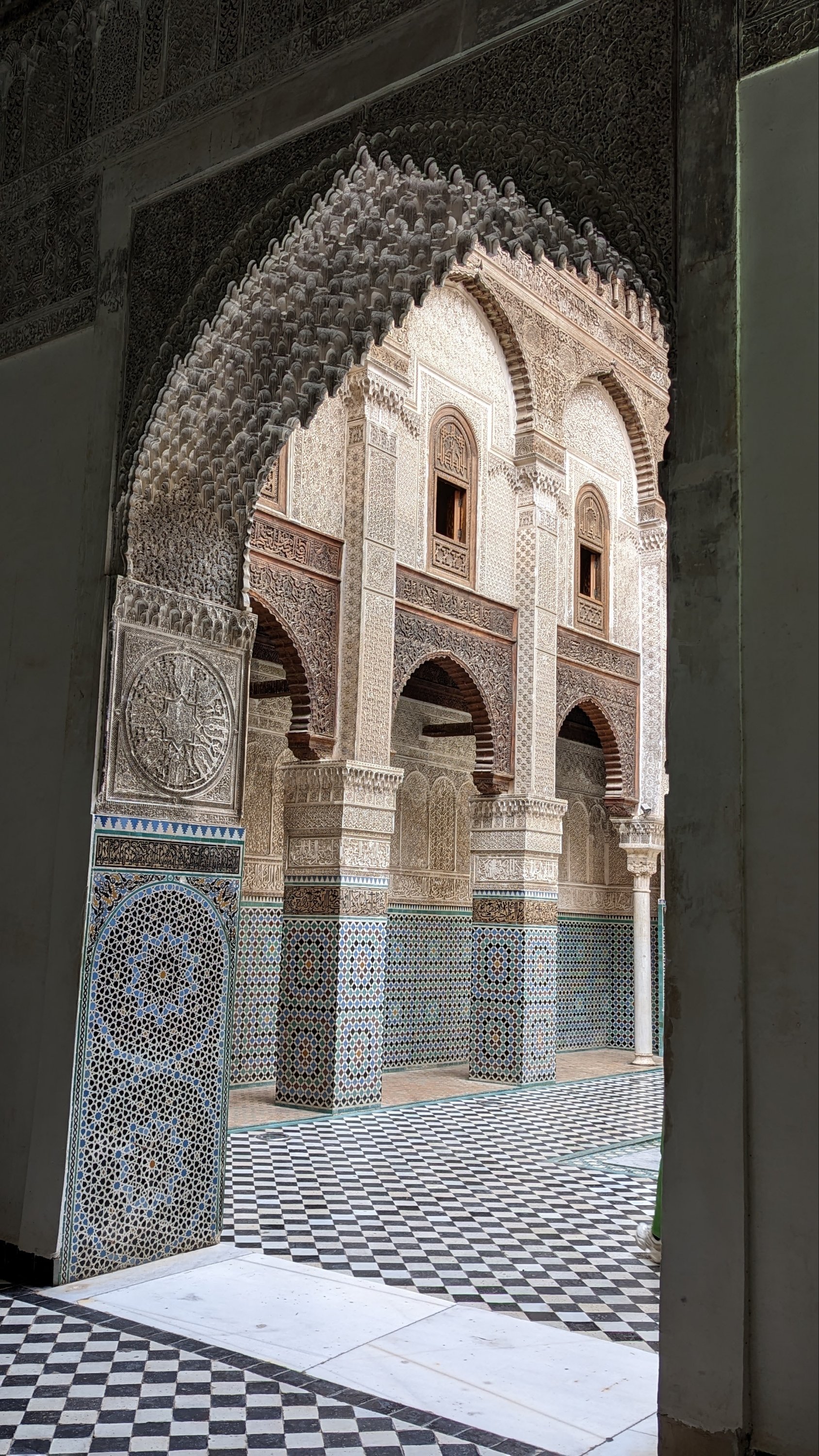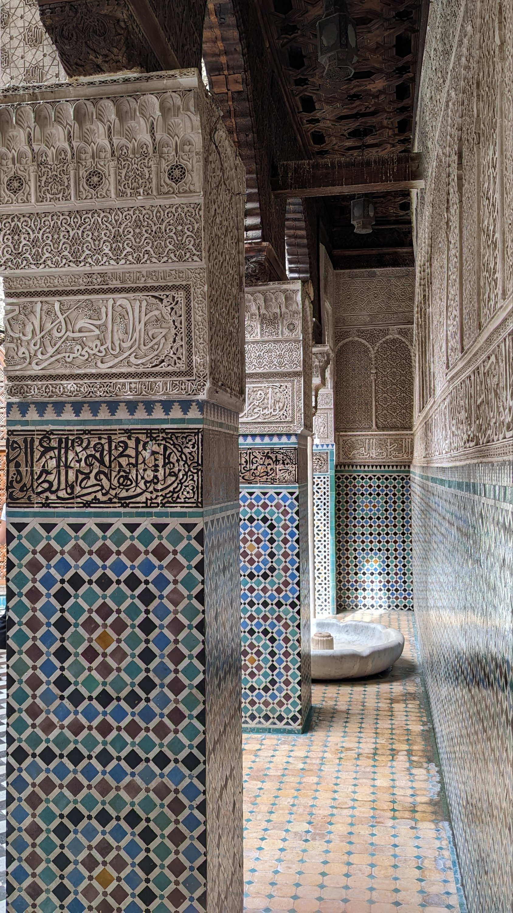 Es absolutamente increíble la cantidad de rincones que uno se topa nada más andando por el zoco. Esta gente tiene un patrimonio absolutamente sorprendente. Incluso si paseas por sus calle sin mirar ninguna referencia de mapas o callejeros, te encuentras mezquitas, edificios aderezados de formas imposibles, arcos emperifollados de mil y un recodos ornamentados, coloreados o con restos de antiguos colores, engalanados con fractales asimétricos que conforman un todo simétrico y completamente armónico.