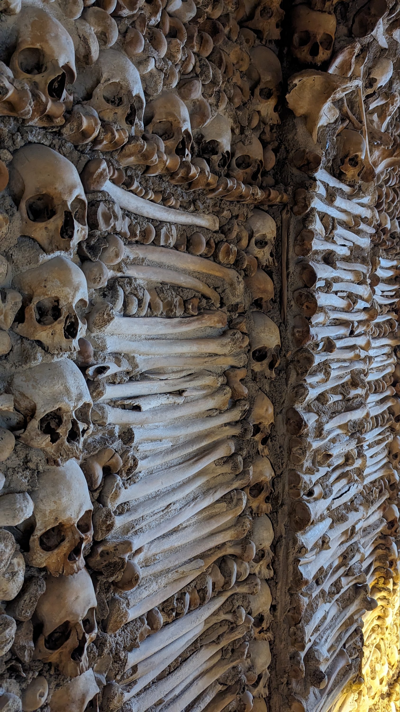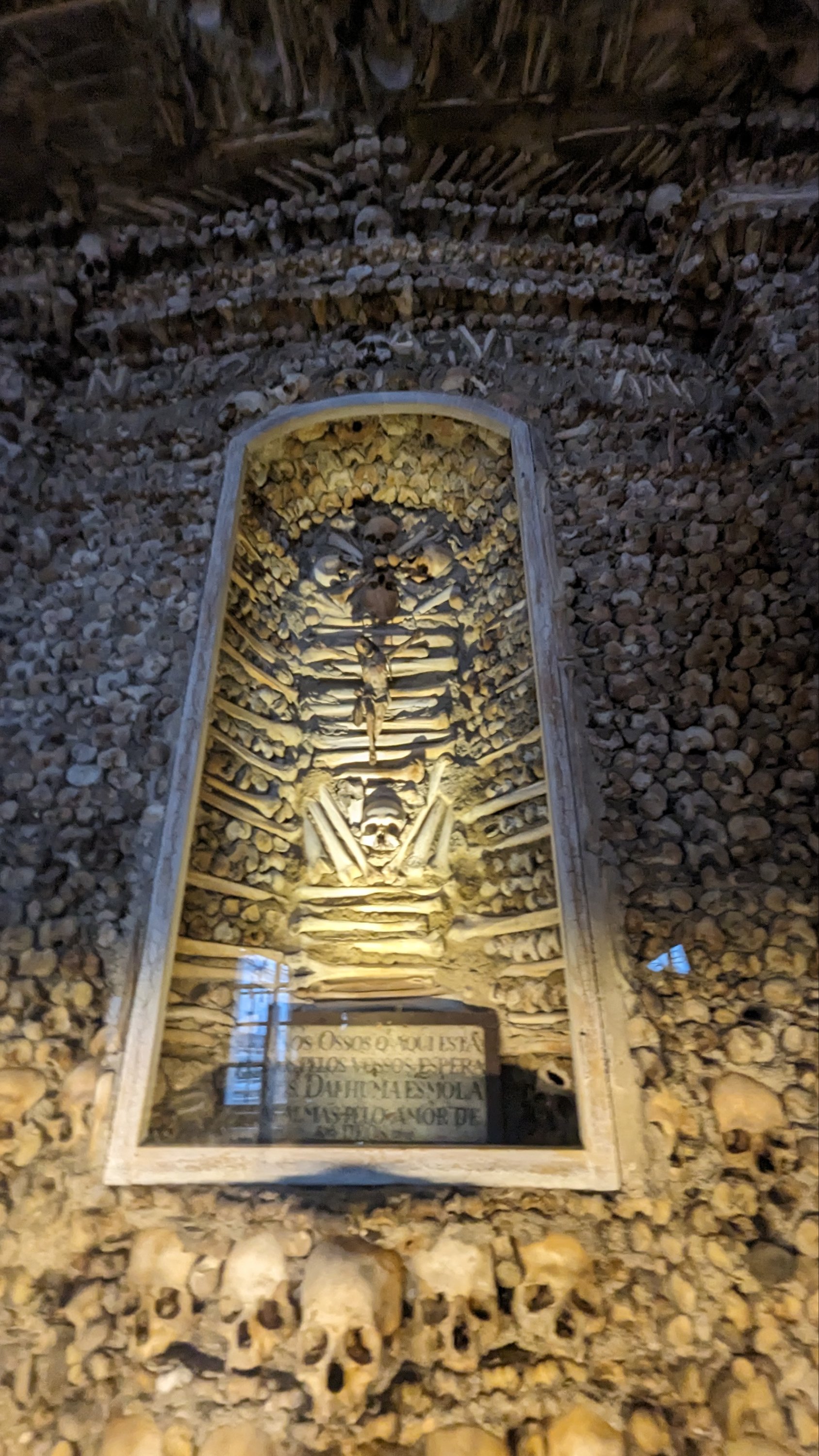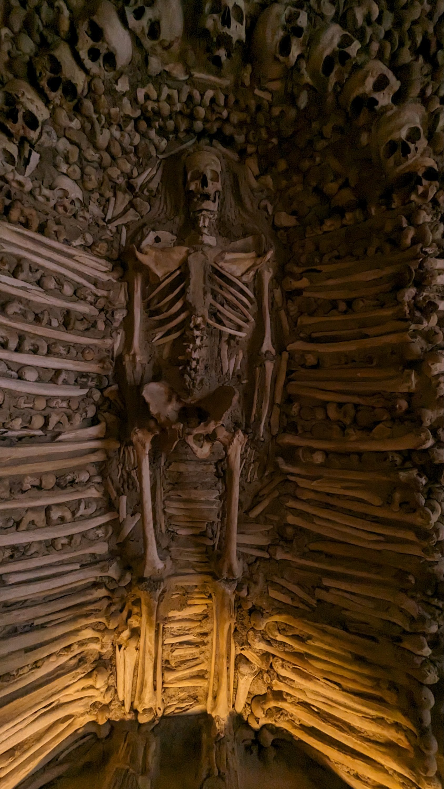 La colocación de los huesos dentro de la sala no es aleatoria. Se siguió una clara intención: se observan bóvedas formadas por cráneos y tibia.