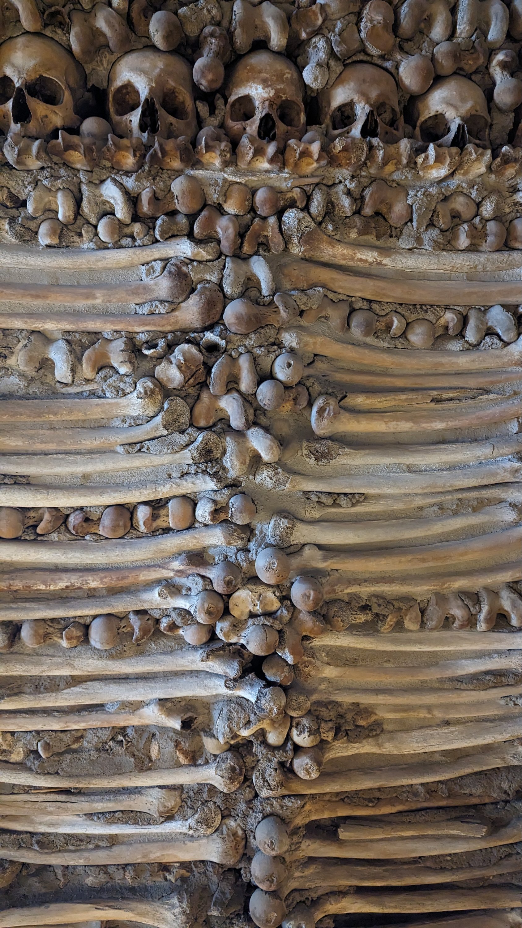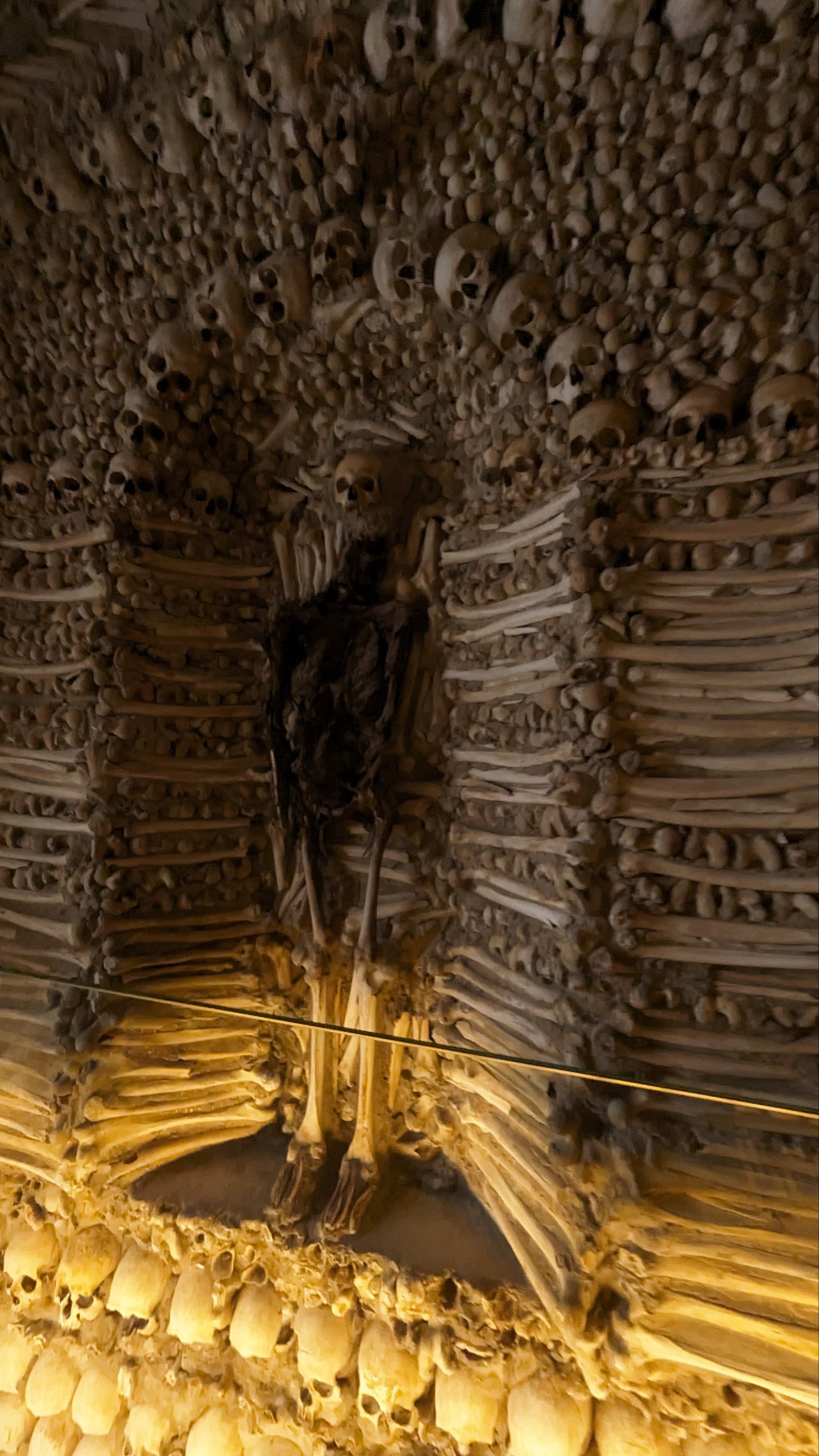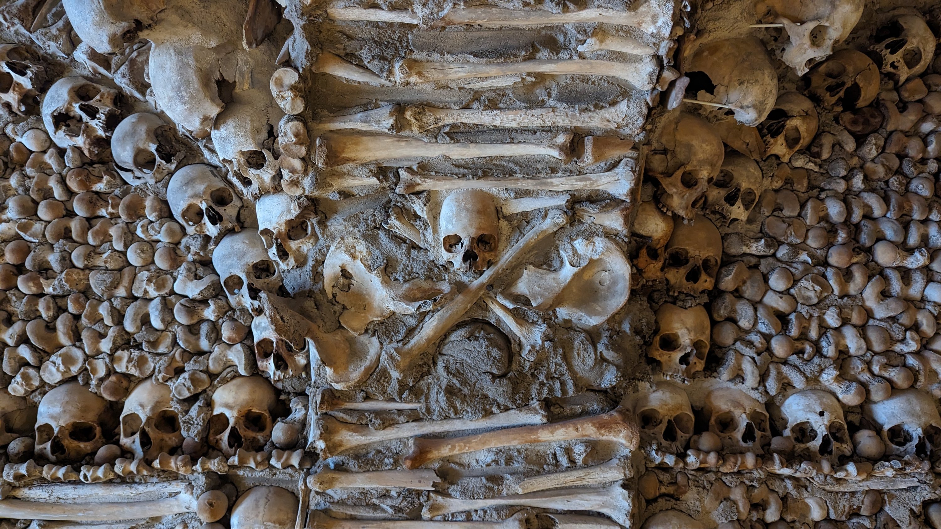 La colocación de los huesos dentro de la sala no es aleatoria. Se siguió una clara intención: se observan bóvedas formadas por cráneos y tibia.