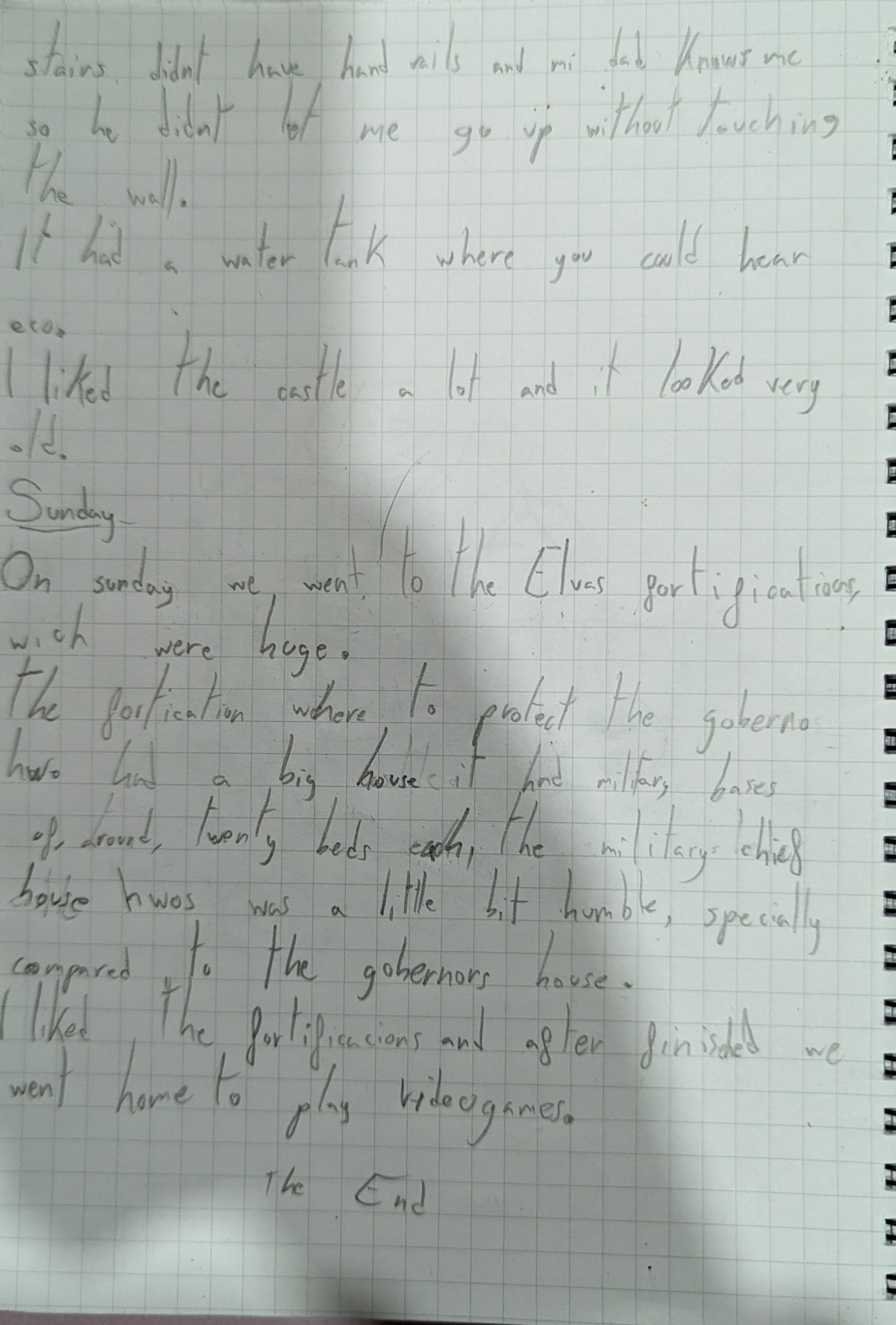 I liked the fortifications and after finished we went home to play videogames.