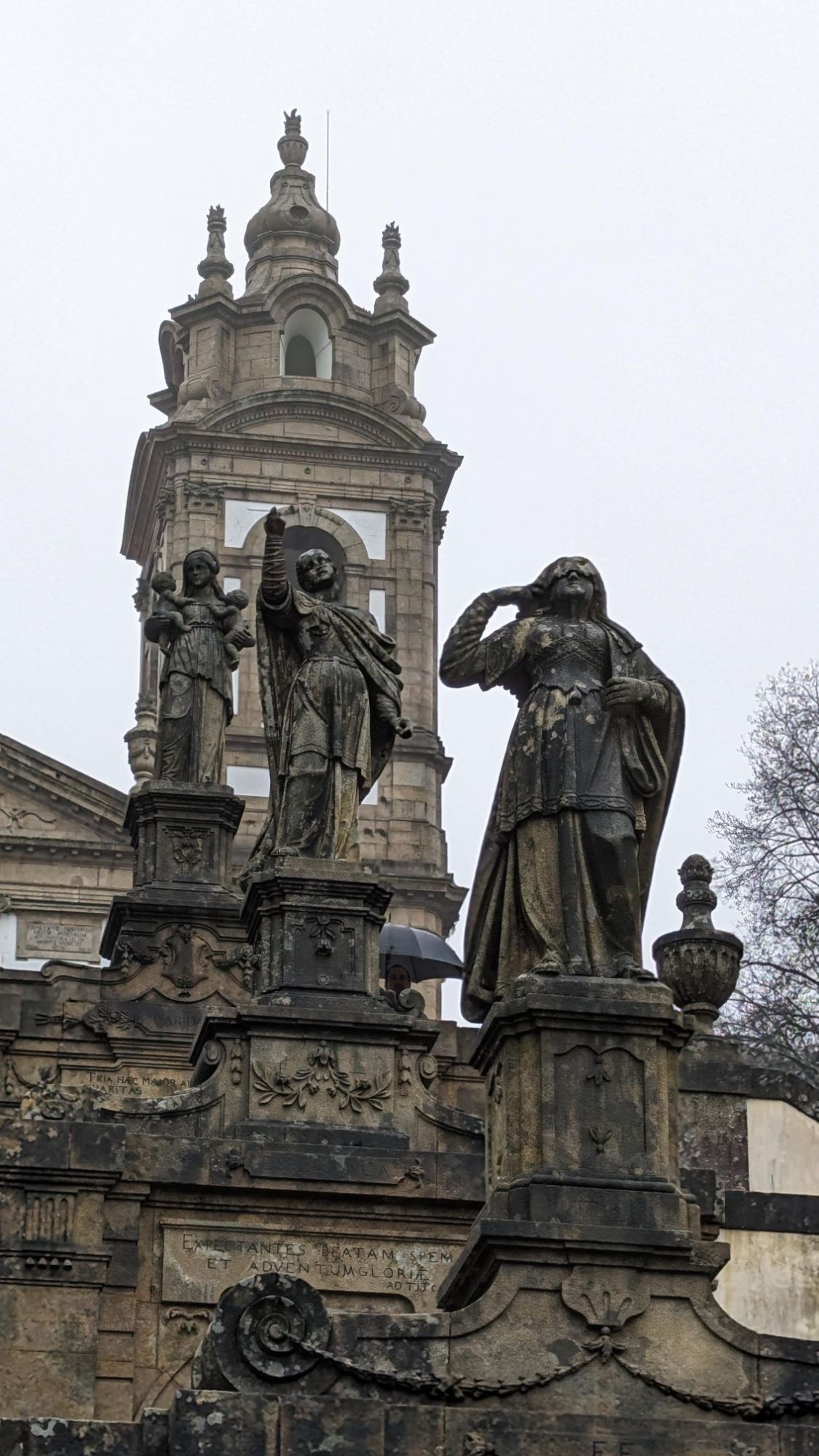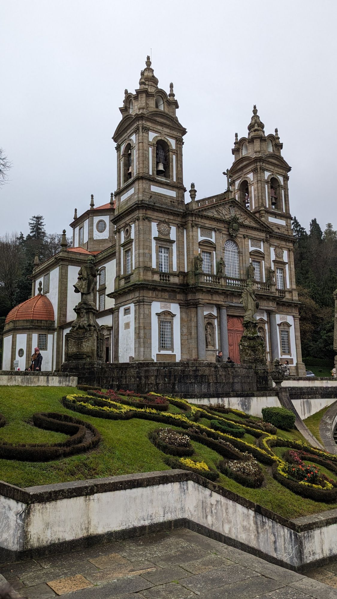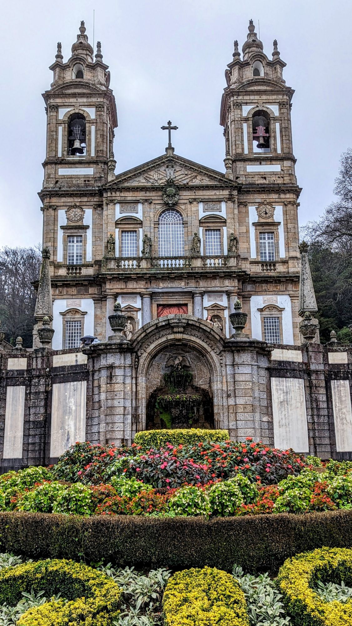 El Santuario de Bom Jesus do Monte es famoso por su escalinata barroca, decorada con una serie de capillas que representan la Pasión de Cristo, y estatuas de figuras bíblicas. Las estatuas en el semicírculo antes de la entrada son parte de esta narrativa visual.