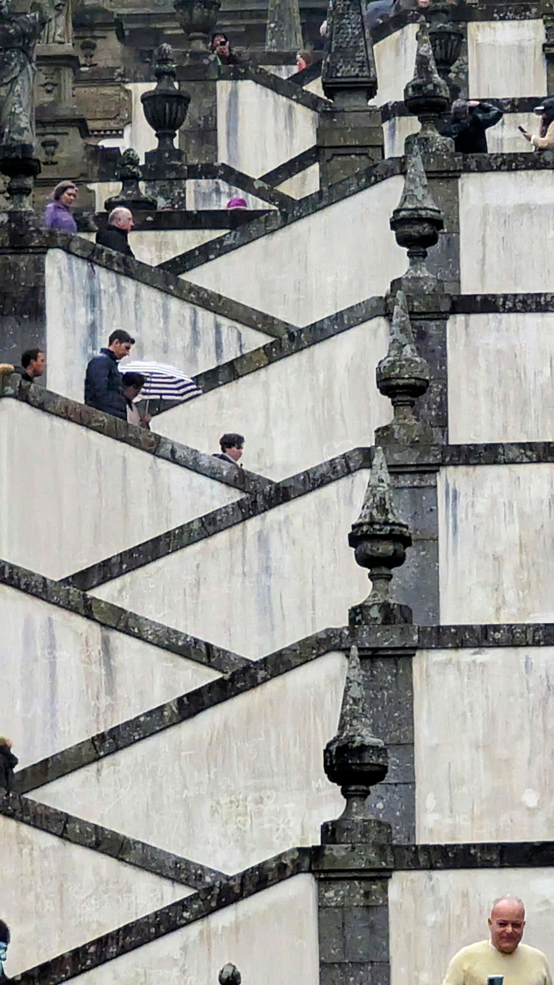 Pero no se les ocurra perderse las vistas desde la parte inferior de la escalinata que se encuentra en la puerta de la iglesia. Hay que descender para poder mirar a los cielos, y disfrutar de la imagen que ofrece el santuario encuadrado por la enorme escalinata zigzagueante. No dejen de verlo por el hecho de la posterior subida hasta la cima. Recuerden que el esfuerzo merece la pena, dado que simboliza la subida a los cielos, acercándose, paso a paso, al paraíso prometido….
