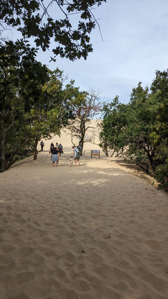 En cuanto a la facilidad de lo heroico de autotransportarse a las alturas, hay escaleras disponibles para facilitar el acceso a la cima. Aunque también puedes optar por subir a pie directamente por la arena, lo cual, les adelanto, no es pan comido para una persona con un físico normalito… Cerca de la base de la duna, encontrarás varios servicios como aparcamientos, tiendas y restaurantes.