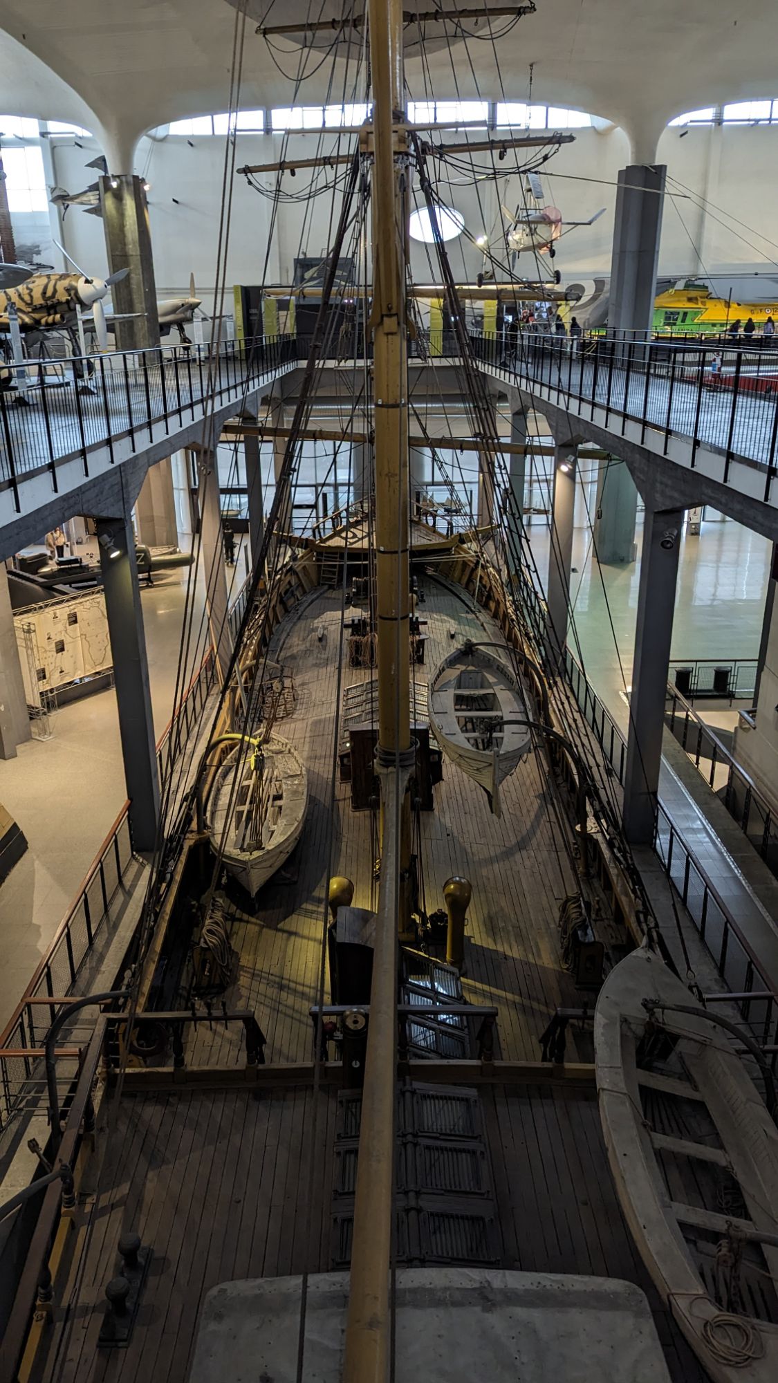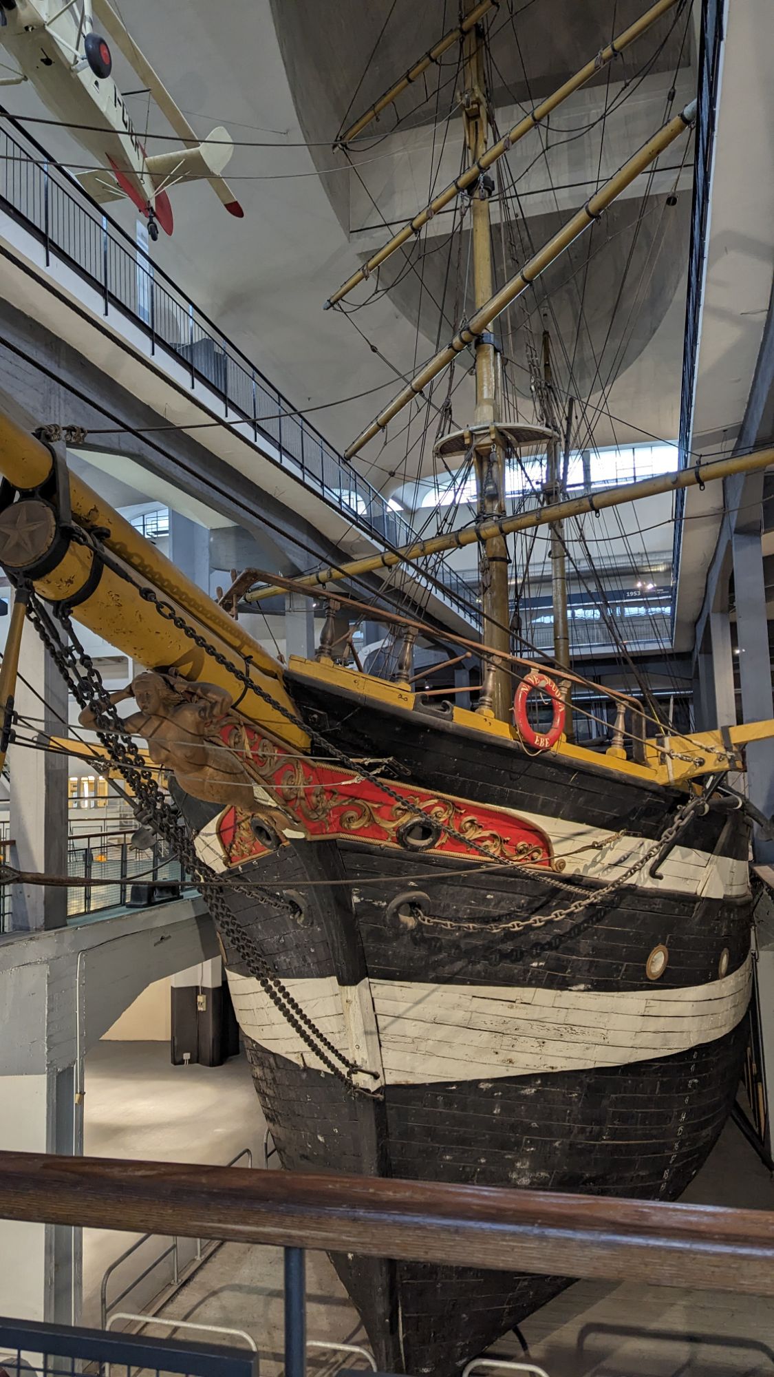 – ¿Se puede cortar un velero en rebanadas y reconstruir todo un pabellón para albergarlo?. El buque escuela Ebe nace en 1921 para el transporte de mercancías en el Mediterráneo, luego se transforma, en los años cincuenta, en buque escuela para timoneles. Al final de su servicio, el museo lo adquiere y lo secciona para reconstruirlo en su totalidad con ocasión de la inauguración del nuevo pabellón aeronaval en abril de 1964. Uno de los buques más grandes que se conservan en el museo.