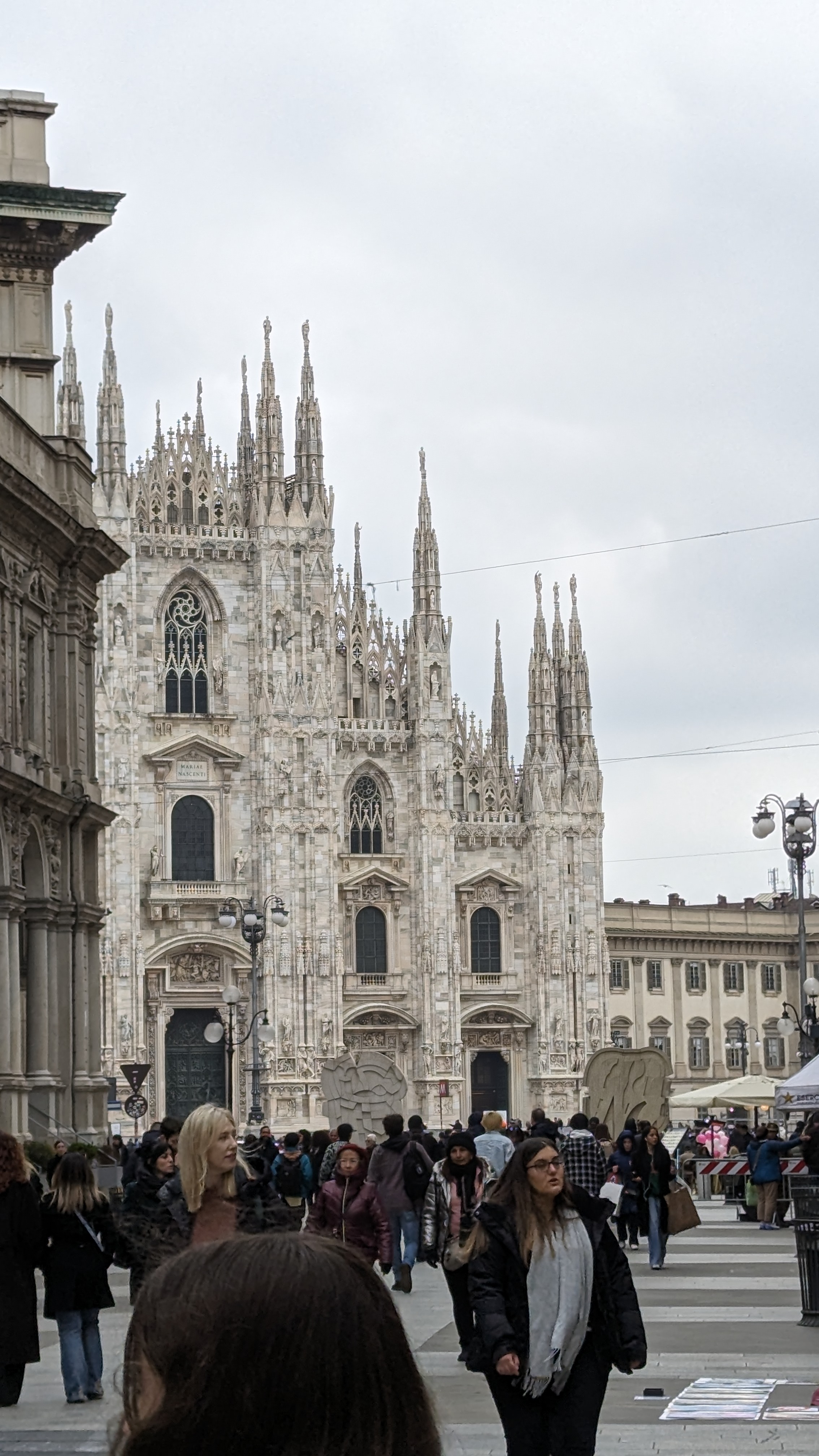 El Duomo de Milán, con su silueta recortada contra el cielo italiano, no es solo una maravilla arquitectónica, sino también un testimonio de la devoción y a la dedicación a la belleza que trasciende el tiempo. En medio de las calles empedradas de Milán, acercándose desde la Piazza dei Mercanti, comienza a desplegarse ante nuestros ojos lo que se vislumbra como una catedral enteramente hecha de encaje, bordada a mano por dedos expertos y certeros. Es impresionante caminar por una bellísima calle y de repente, al girar, te encuentras con esta magnífica catedral que se eleva como una promesa de belleza eterna.