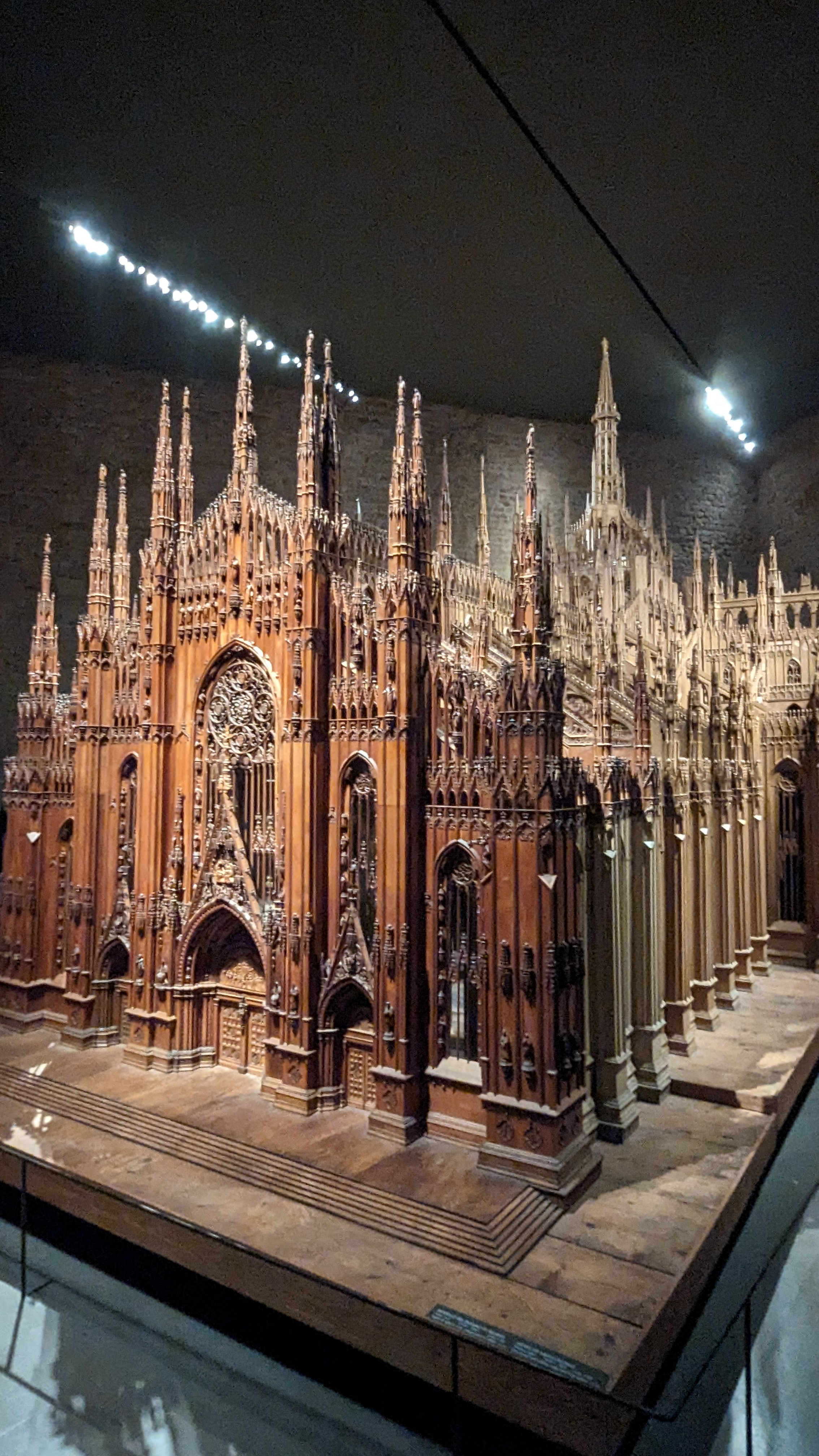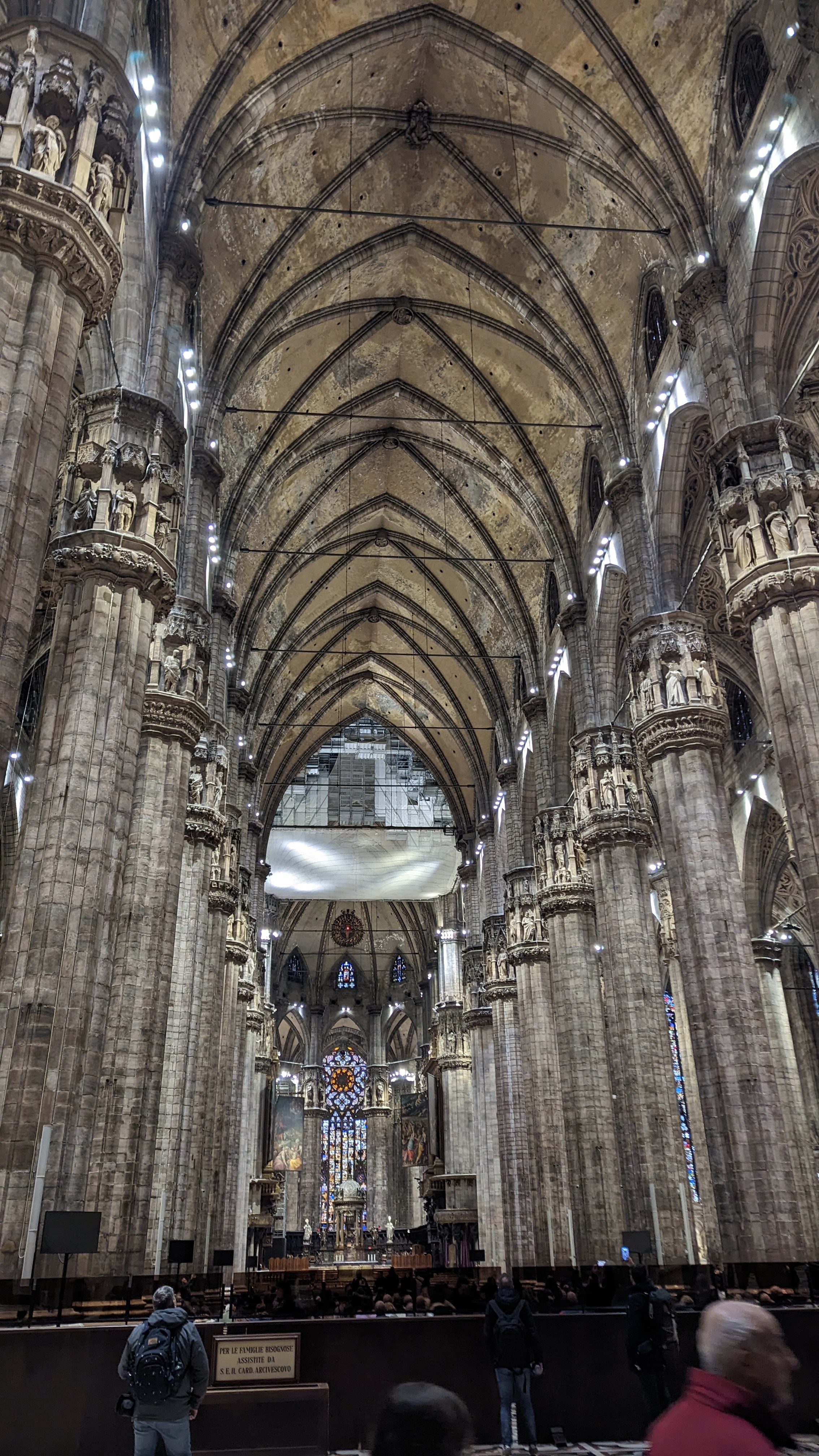 Construido a lo largo de varios siglos, el trabajo en el Duomo comenzó en 1386 y continuó en etapas hasta el siglo XIX, lo que explica la mezcla de estilos arquitectónicos que se pueden ver en el edificio. La catedral es notable por su uso extensivo de mármol de Candoglia, que le da un brillo distintivo y un color blanco rosado.