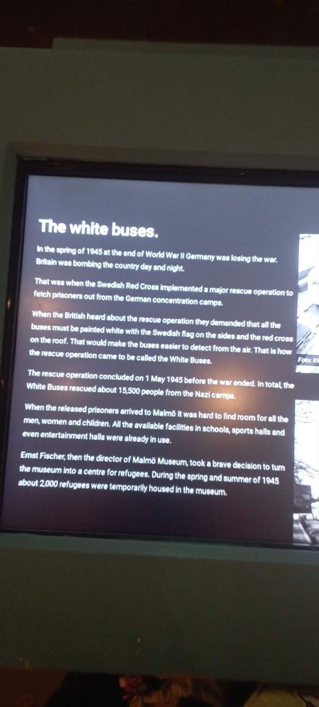 Ernst Fischer, entonces director del Museo de Malmö, tomó la valiente decisión de convertir el museo en un centro de refugiados. Durante la primavera y el verano de 1945, alrededor de 2,000 refugiados fueron alojados temporalmente en el museo.