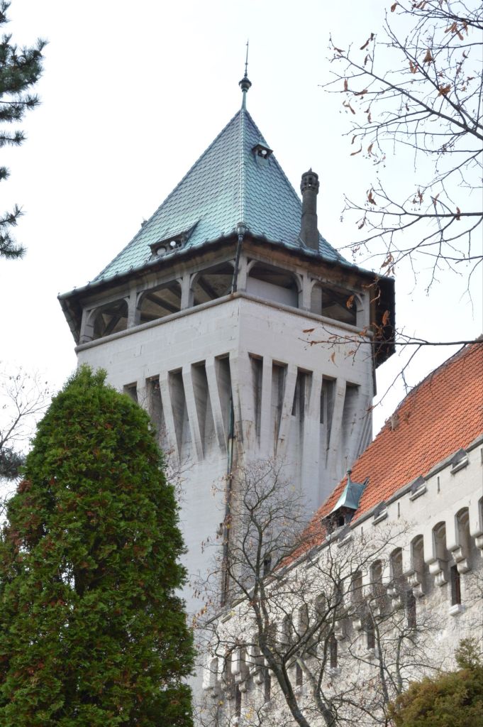 Cada rincón del castillo revela detalles de su evolución a lo largo del tiempo. La única entrada principal que permanece está decorada con un arco neogótico que refleja las reformas realizadas en el siglo XX por la familia Pálffy, cuyos símbolos familiares, un león y un ciervo, están presentes en el escudo que corona la puerta. Una leyenda cuenta que el ciervo salvó a un miembro de esta noble familia, otorgándole un lugar eterno en sus emblemas.